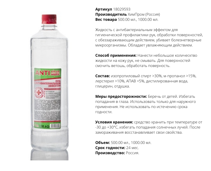 ХимПром, ANTIvirus septic - Жидкость с антибактериальным эффектом (0,5 л.; 1 л.)