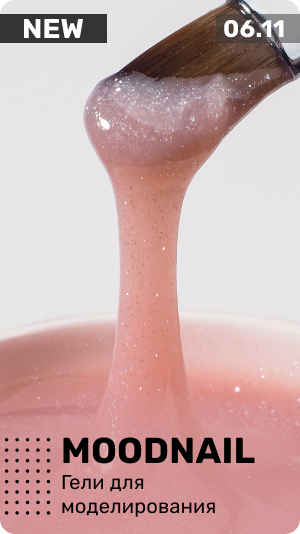 Гель для наращивания средней консистенции, полупрозрачный с опаловым шиммером, бежевый.