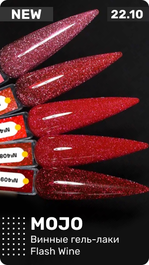 Яркий красный с малиновым подтоном и деликатным шиммером, плотный.