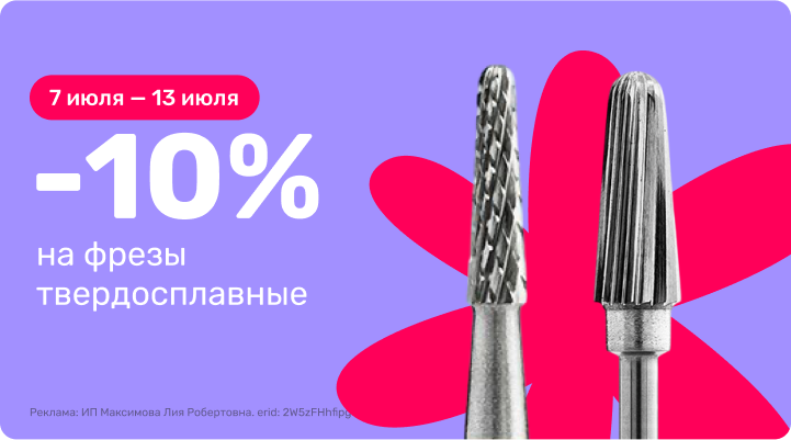 С 07 июля 00:00 по 13 июля 23:59 (время Мск) 2025г. скидки до 10% на фрезы!