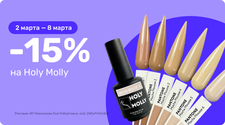 С 2 марта 00:00 по 8 марта 23:59 (время Мск) 2026г. -15% на Holy Molly!