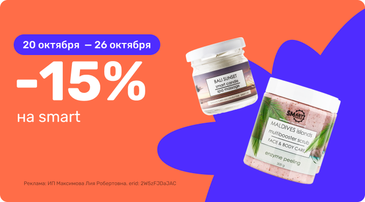 С 20 октября 00:00 по 26 октября 23:59 (время Мск) 2025г. скидка 15% на Smart!