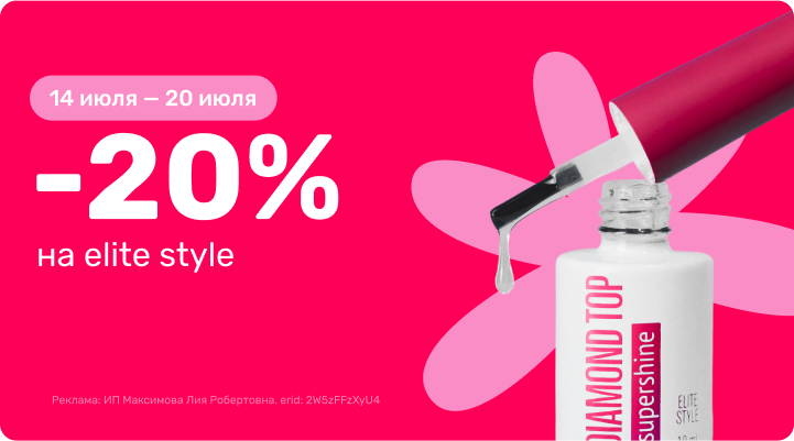 С 14 июля 10:30 по 20 июля 23:59 (время Мск) 2025г. скидка 20% на Elite Style!