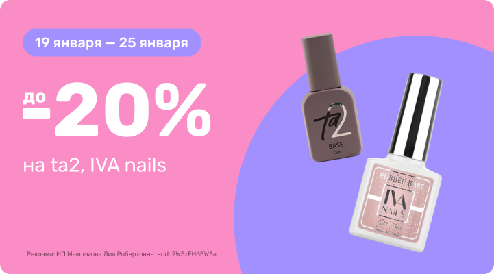 С 19 января 00:00 по 25 января 23:59 (время Мск) 2026г. -20% на Ta2, IVA Nails!
