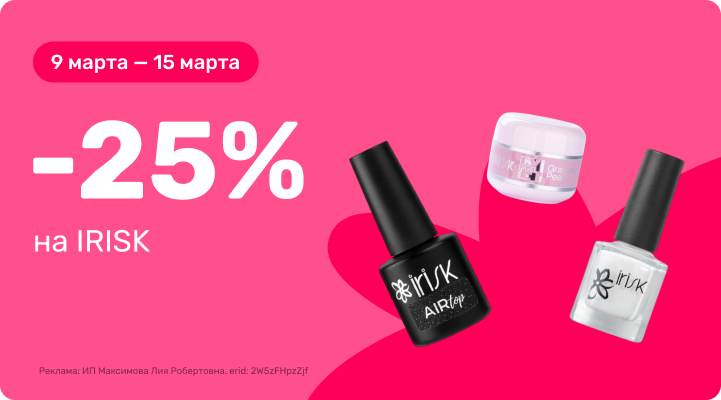 С 9 марта 00:00 по 15 марта 23:59 (время Мск) 2026г. -25% на Irisk!