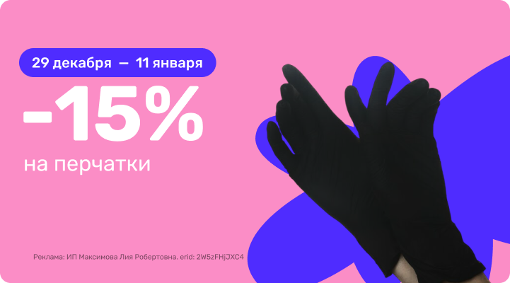 С 29 декабря 00:00 по 11 января 23:59 (время Мск) 2025г. -15% на перчатки!