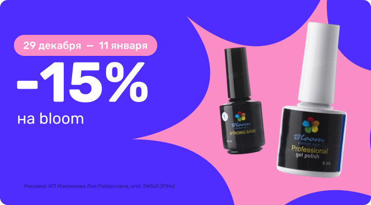 С 29 декабря 00:00 по 11 января 23:59 (время Мск) 2025г. -15% на Bloom!