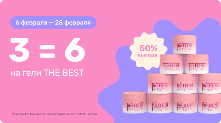 С 6 февраля 00:00 по 28 февраля 23:59 (время Мск) 2026г. 3=6 на гели The Best!