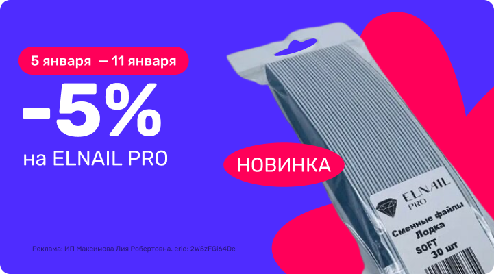 С 5 января 00:00 по 11 января 23:59 (время Мск) 2026г. -5% на Elnail Pro!