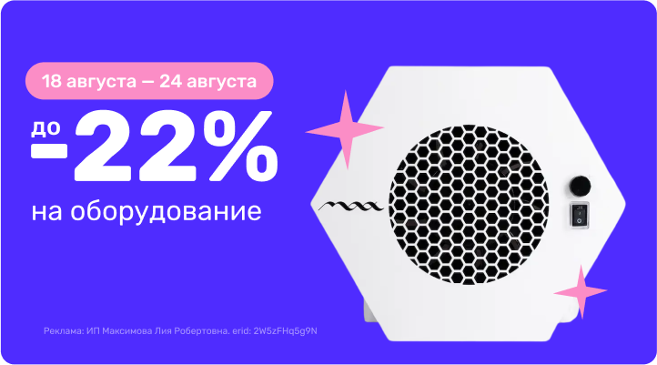 С 18 августа 18:00 по 24 августа 23:59 (время Мск) 2025г. скидки до 22% на оборудование!