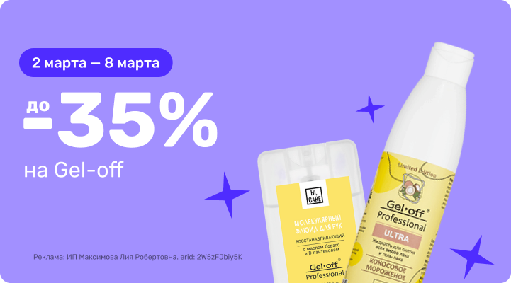 С 2 марта 00:00 по 8 марта 23:59 (время Мск) 2026г. до -35% на Gel-off!