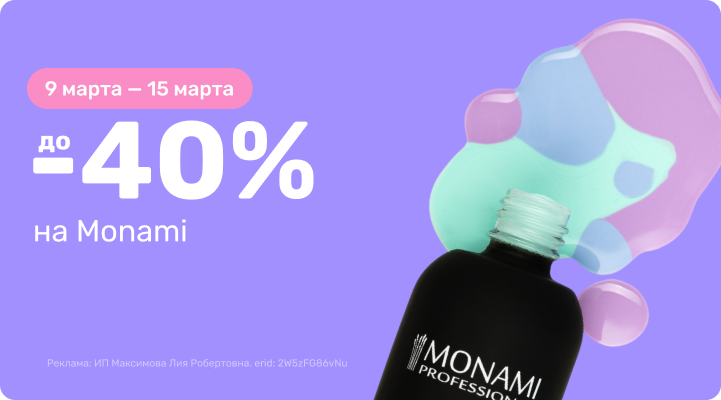 С 9 марта 00:00 по 15 марта 23:59 (время Мск) 2026г. до -40% на Monami!