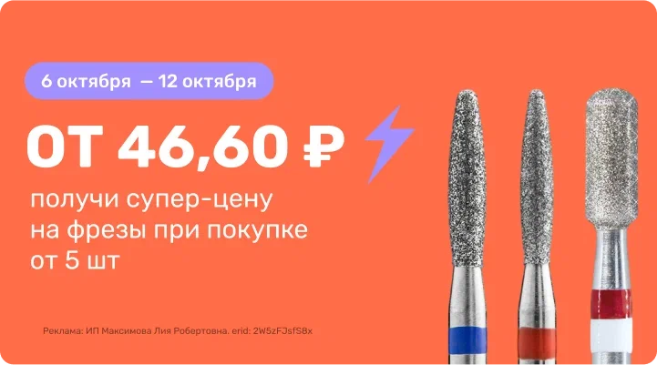 С 06 октября 00:00 по 12 октября 23:59 (время Мск) 2025г. супер-цена на фрезы при покупке от 5-х штук!
