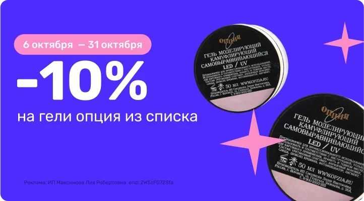 С 06 октября 00:00 по 31 октября 23:59 (время Мск) 2025г. скидка 10% на гели Опция!