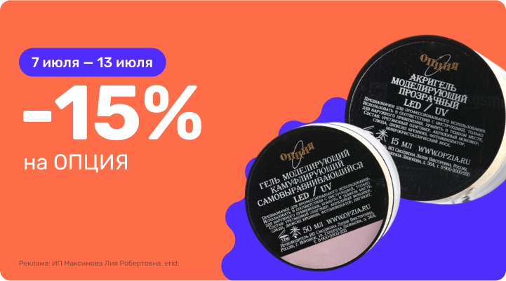 С 07 июля 00:00 по 13 июля 23:59 (время Мск) 2025г. скидка 15% на Опция!