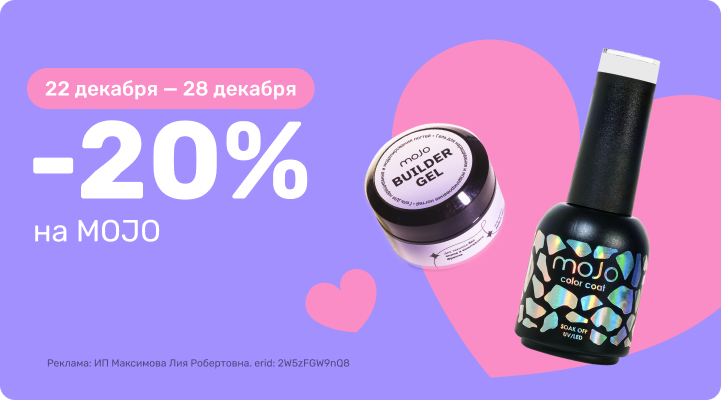 С 22 декабря 00:00 по 28 декабря 23:59 (время Мск) 2025г. -20% на MOJO!