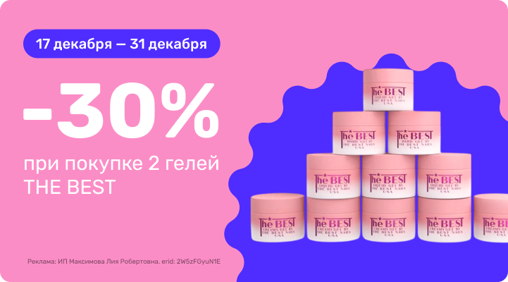 С 17 декабря 00:00 по 31 декабря 23:59 (время Мск) 2025г. скидка 30% при покупке 2-х гелей THE BEST!