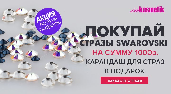 При покупке страз Swarovski на сумму 1000 руб., карандаш для страз в подарок!