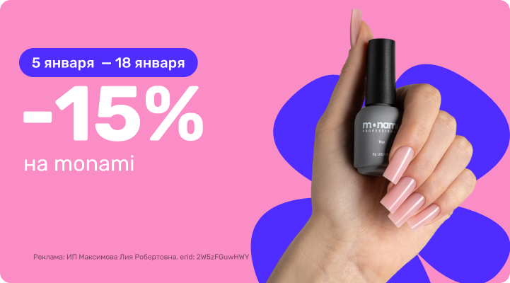 С 5 января 00:00 по 18 января 23:59 (время Мск) 2026г. -15% на Monami!