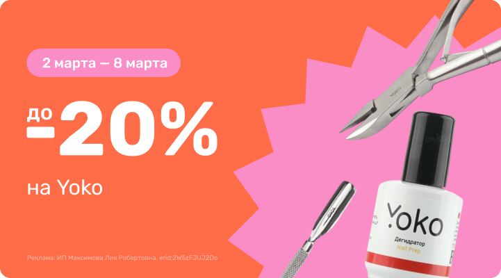 С 2 марта 00:00 по 8 марта 23:59 (время Мск) 2026г. до -20% на Yoko!