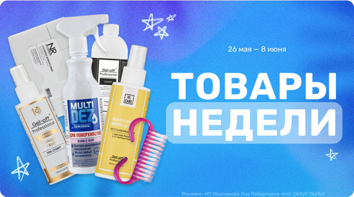 С 26 мая 00:00 по 08 июня 23:59 (время Мск) 2025г. скидки на товары недели!