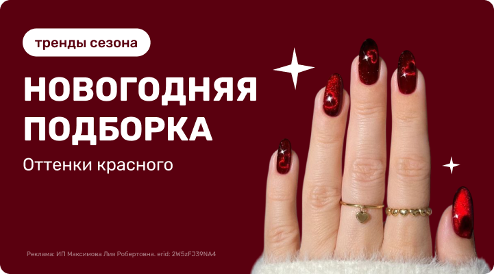 Малиново-красный со светоотражающими частицами и разноцветными хлопьями, плотный.
